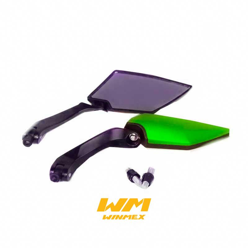 Espejos retrovisores para moto Universales, Con adaptador 10mm, color verde.