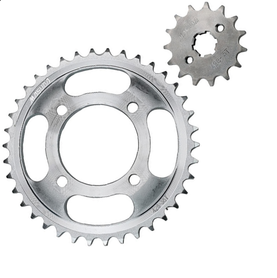 Kit de engranes (sprocket), Acero 1025, paso 428 38T/15T, Italika FT125, FT125 CL, FT125 E, FT125 Sport, FT125 TS, XFT125